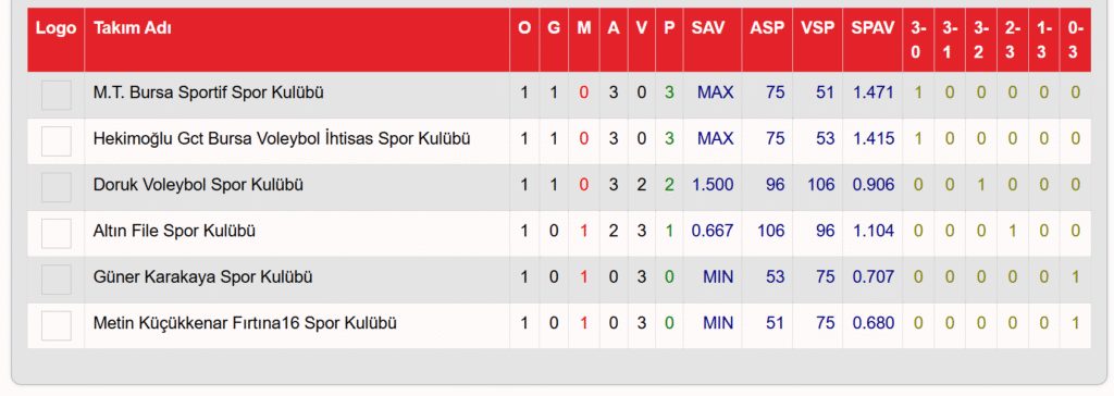 İlk maçlar sonucunda oluşan puan durumu.